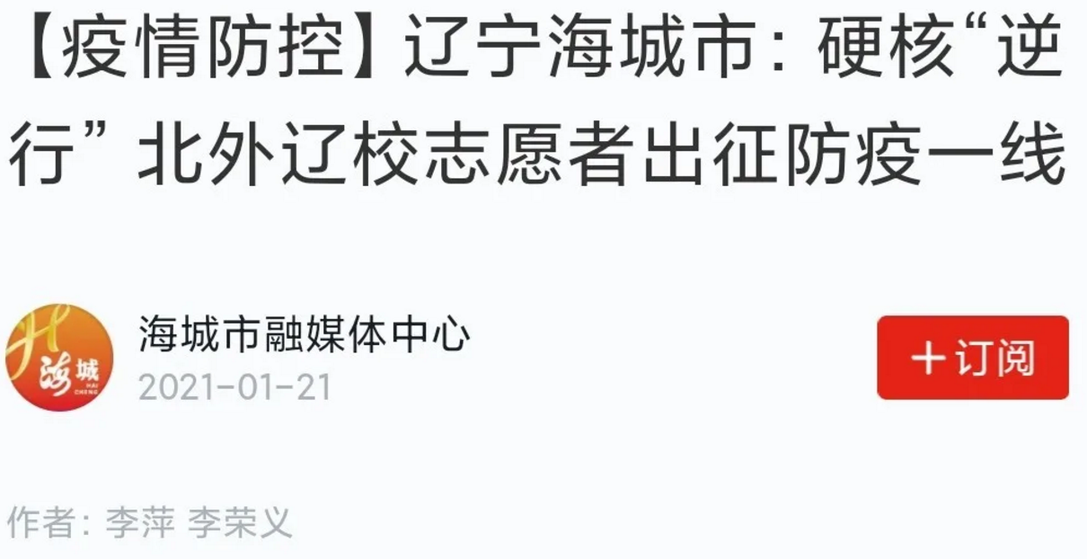 【强国点赞】北外辽校首批抗疫志愿者受学习强国平台点赞 2021年1月13日至14日,由优秀党员、优秀团员和年轻骨干教师组成的北外辽校首批抗疫志愿者,面对疫情义无反顾出征海城全民