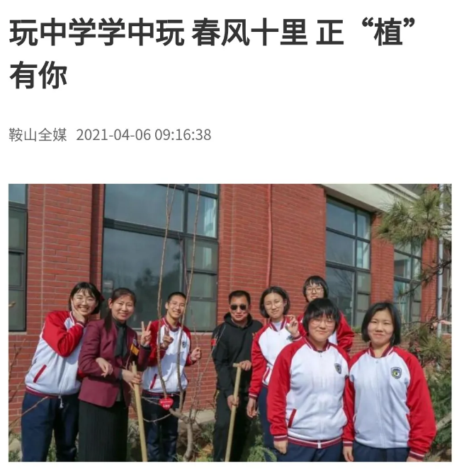 【媒体关注】正植有你 北外辽校获鞍山市新闻传媒中心点赞 为提高全体师生环保意识,增强绿色认识,共建美丽校园。北外辽校创始人王向阳先生带领师生代表一起在校园植树,受到