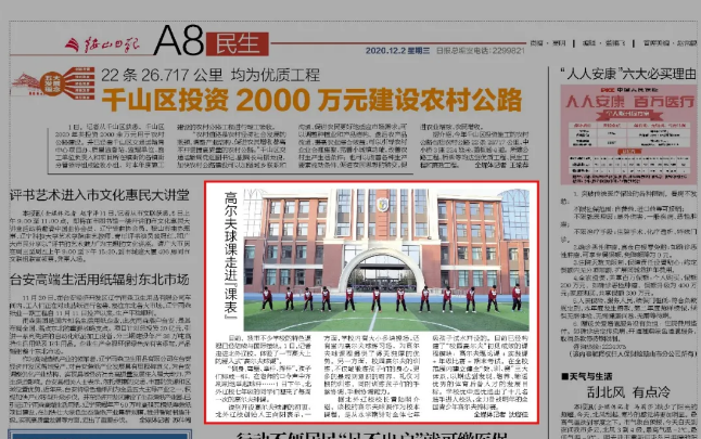 【媒体关注】鞍山日报点赞北外辽校开设高尔夫球课 北外辽校特色课程与国际接轨,开设的浸入式高尔夫球课程受到了鞍山市新闻传媒中心关注、点赞。12月2日的鞍山日报、千山晚报、