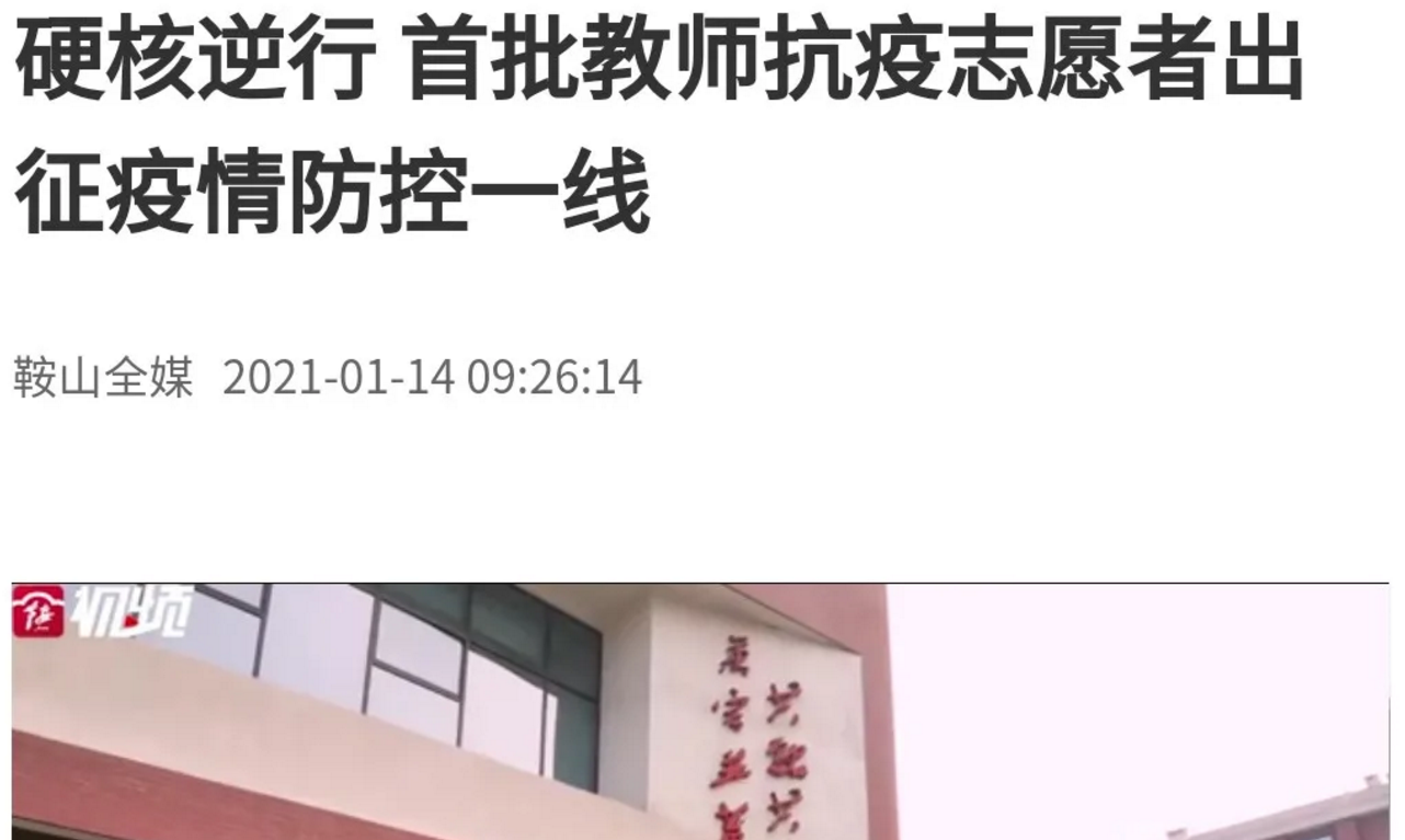 【媒体关注】北外辽校首批抗疫志愿者出征一线获鞍山市新闻传媒中心点赞 2021年1月13日,由优秀党员、优秀团员和年轻骨干教师组成的北外辽校首批抗疫志愿者,面对疫情义无反顾出