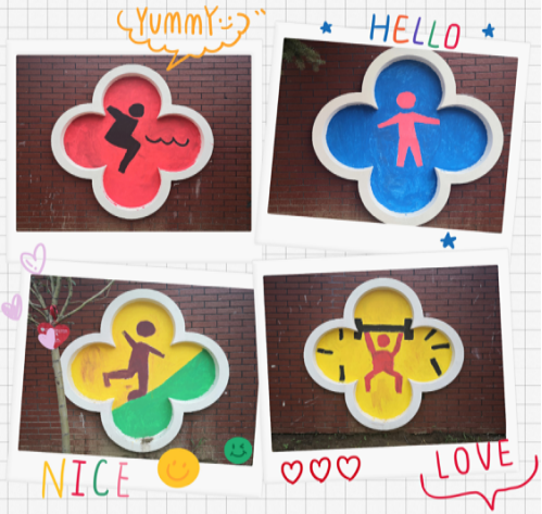 学校每天都有新变化,操场本来白色的墙壁上,留下了同学们参与校园建设的美丽印记,当他们毕业之后来看母校的时候,可以骄傲地说:“这是我画的”。