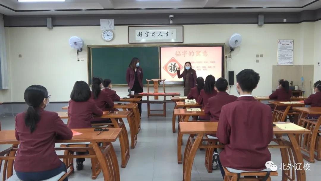 为了庆祝即将到来的新春佳节,弘扬中国传统文化。近日,北外辽校创始人王向阳先生、书法老师杨天赦、赵艺带领学生手写多种笔体的“福”字,在给家人和同学送祝福的同时,让学生们感受过年的风俗习惯,感受中国书法的魅力。