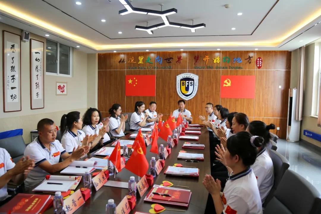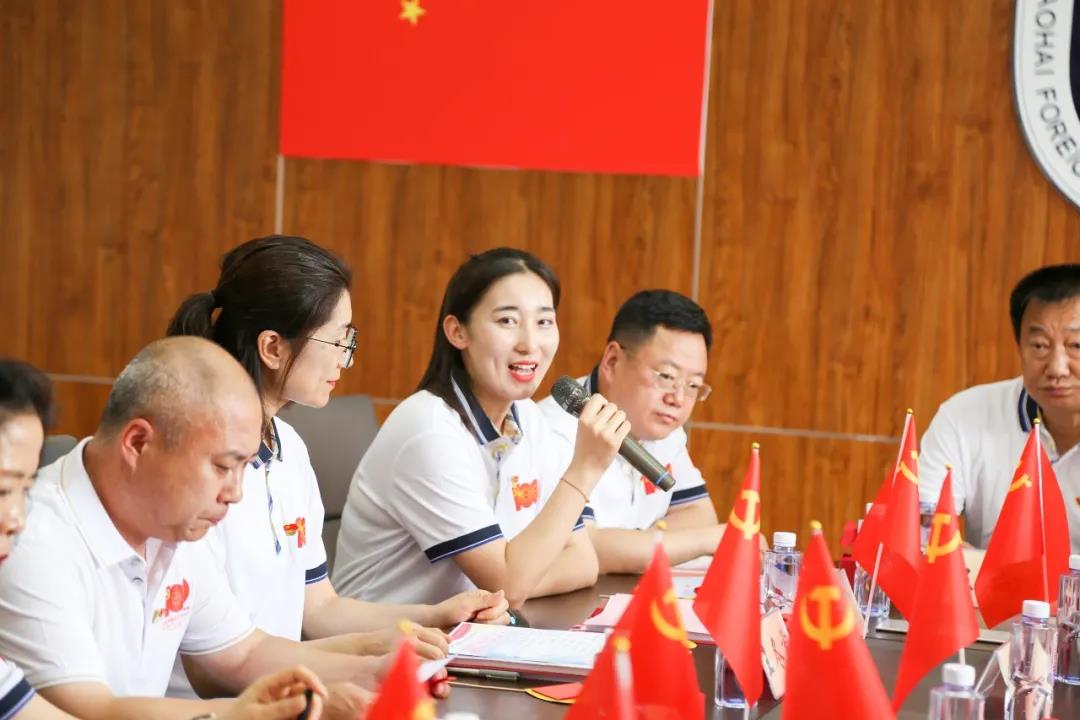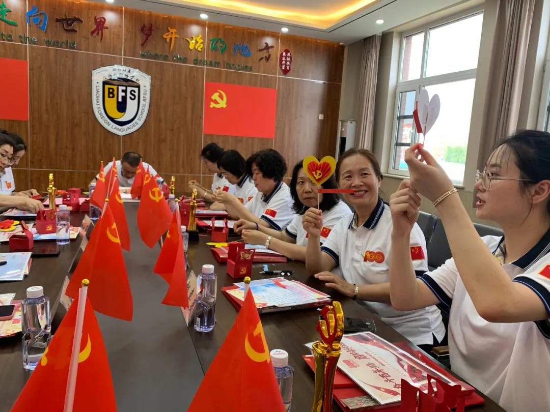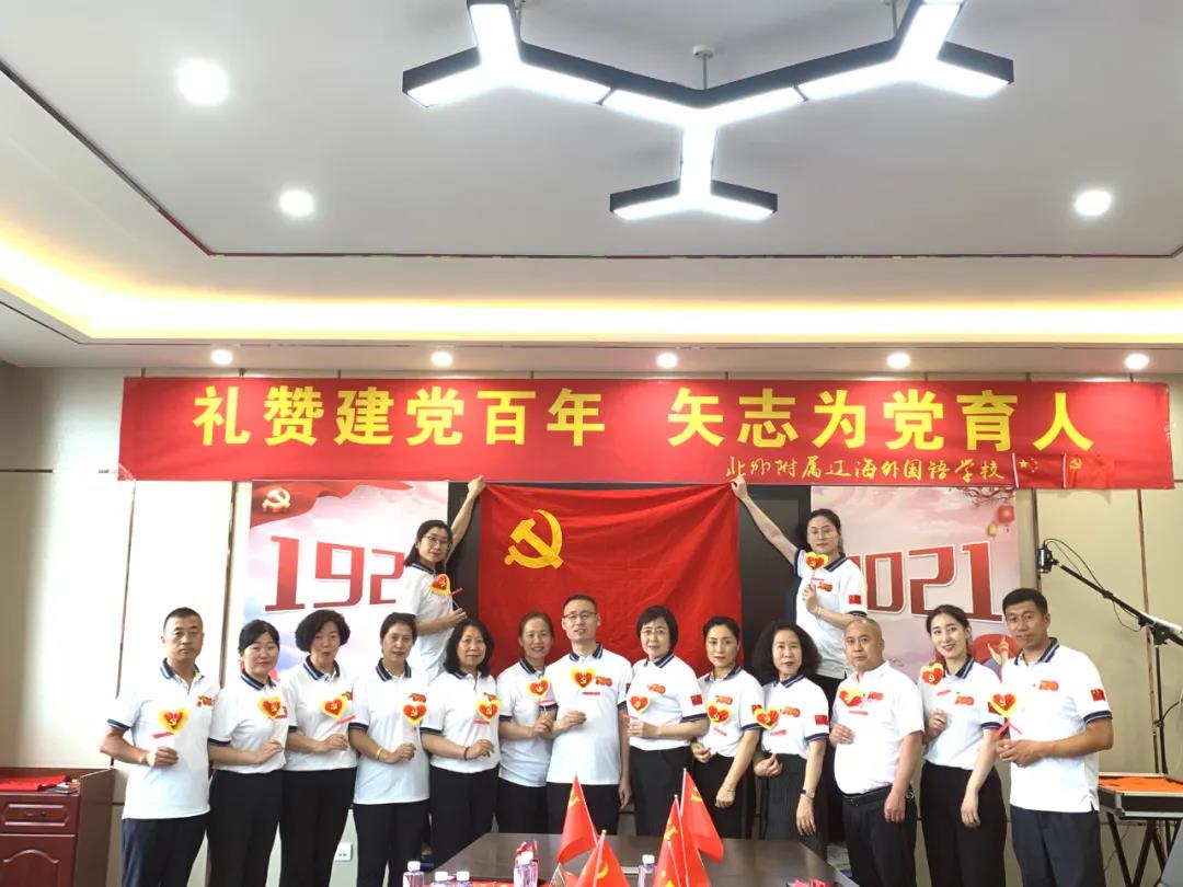 6月29日下午13:10分,中共北外附属辽海外国语学校支部委员会在二楼会议室举行中国共产党成立100周年庆祝大会,向伟大的党献上最诚挚的祝福。参加庆祝大会的人员有:特邀嘉宾王向阳董事长、黄陆明校长,支部党员、支部重点培养对象及入党积极分子等。