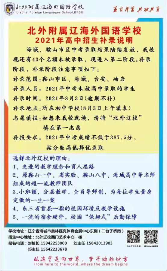 北外辽校高中部2021年补录开始啦!