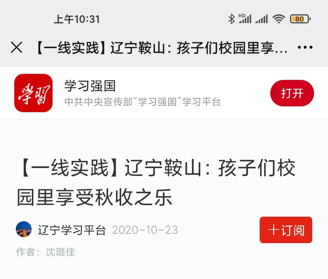 【强国点赞】北外辽校特色教育受学习强国平台点赞 通过 宽敞明亮的动植物自然生态园, 北外辽校 成功将农耕的情景导入校园,让学生们变身农夫,帮助学生们懂得粮食的珍贵,感受