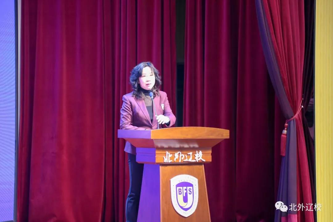 在全体教职员工齐唱国歌之后,大会正式开始。会议首先介绍新入职的省内正高级名师叶晓春,优秀青年教师杨为锋等老师。之后,由党委副书记佟瑞波对新学期师德师风建设作出相关要求。她表示,一直以来,北外辽校的师德师风建设工作,得到了社会各界的高度认可。在新学期,学校依然将师德师风建设作为首要工作,希望每一位老师以爱心对待每一名学生。