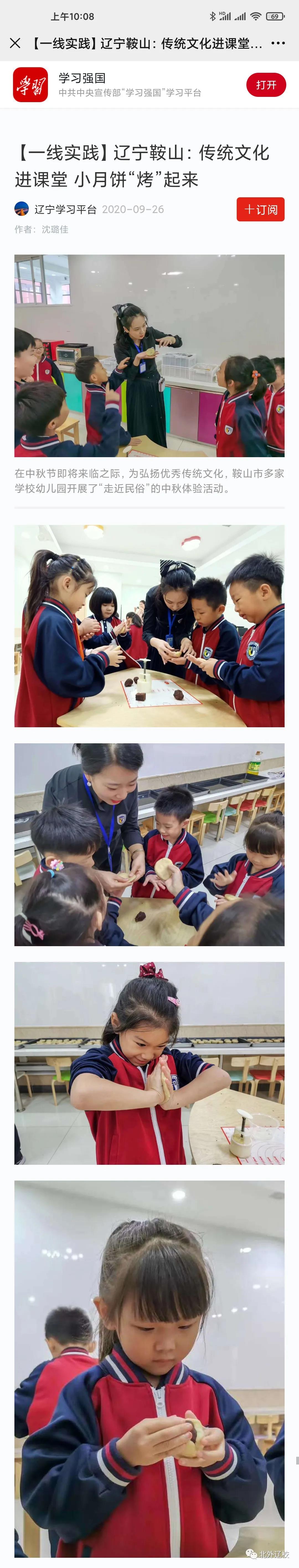 近日,学校的烘焙课上传授全体学生“月饼”做法,还植入孝心教育,让孩子把自己做好的月饼带回家给父母品尝。这一做法,不但得到了鞍山市新闻传媒中心的报道,还受到“学习强国”平台关注。