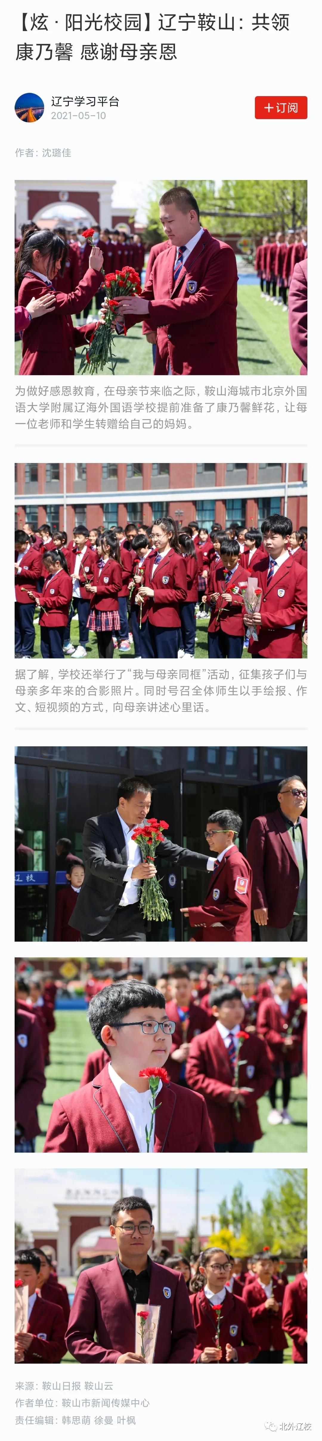 【强国点赞】北外辽校“感恩母亲”系列活动得到“学习强国”平台点赞