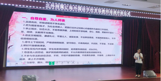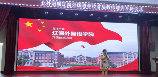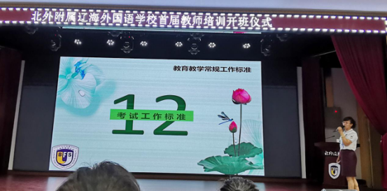 李凤艳老师从升旗仪式程序、国旗下讲话安排、升起仪式具体要求等方面进行了详细讲解读。根据当月节日或学校安排来设计升旗仪式主题,充分体现了北外辽校的育人特色。