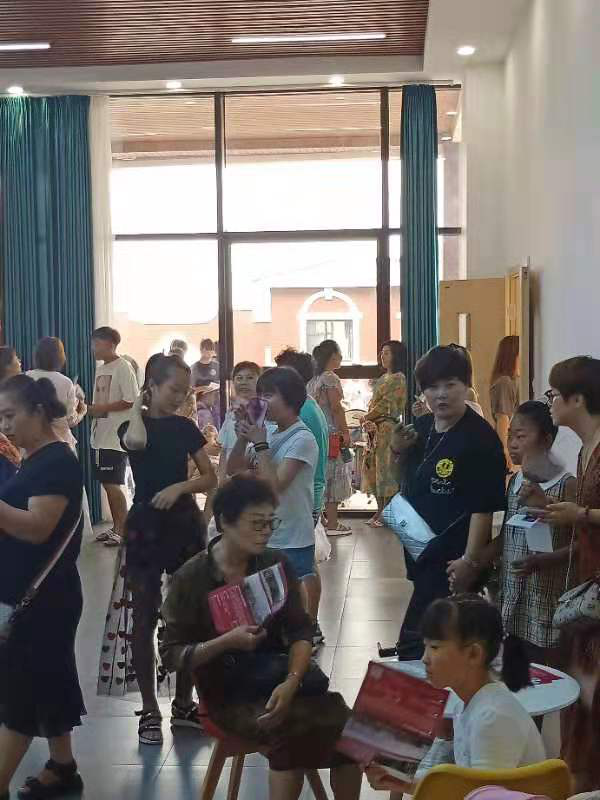 候场的孩子和家长聚集在招生中心,对北外辽校产生浓厚的兴趣,不断有家长、孩子围着北外辽校的教师进行咨询。
