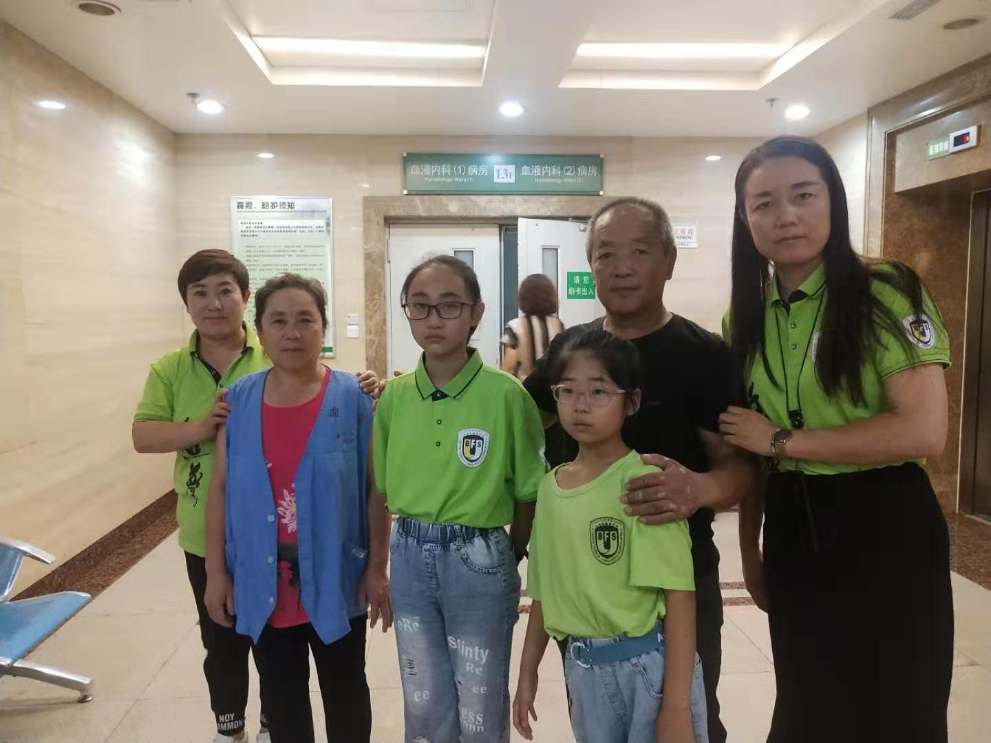 到了病房,李凤艳主任代表学校全体师生将所有募集善款亲自送到刘佳怡同学家长手里,他们眼含热泪地连声感谢,表示这些善款犹如雪中送炭,让负担累累的家庭可以继续顽强地支撑下去。同时,请老师转达对北外辽校全体师生大义善举的谢意。
