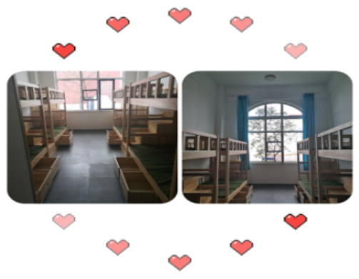 宿舍装上了天蓝色窗帘,同学们感受到学校像家一样温馨。