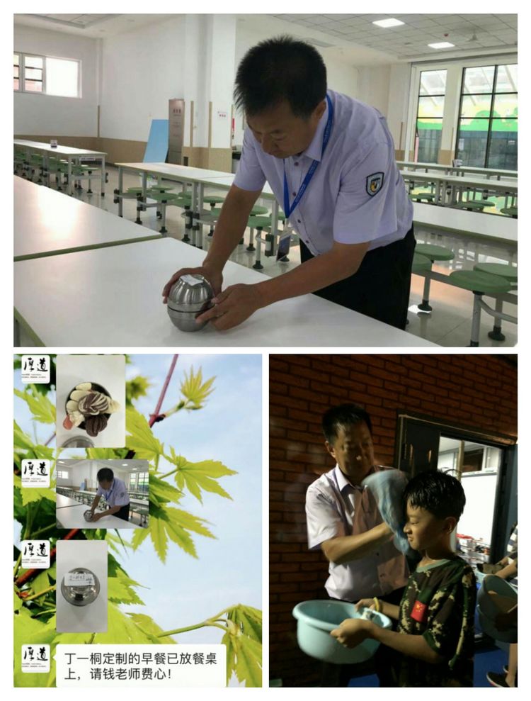 雨天,他为了不让孩子们淋雨着凉,亲自撑起伞在校门口安排车辆接送;有的孩子不能吃奶黄包,他便早早来到食堂,悄悄把其他面食准备好,放在孩子的餐桌上;晚上,他来到男生宿舍,和孩子们聊天,倾听着每一个孩子的心声......怪不得孩子们每次见到“王爷爷”都会开心的大声问好呢!