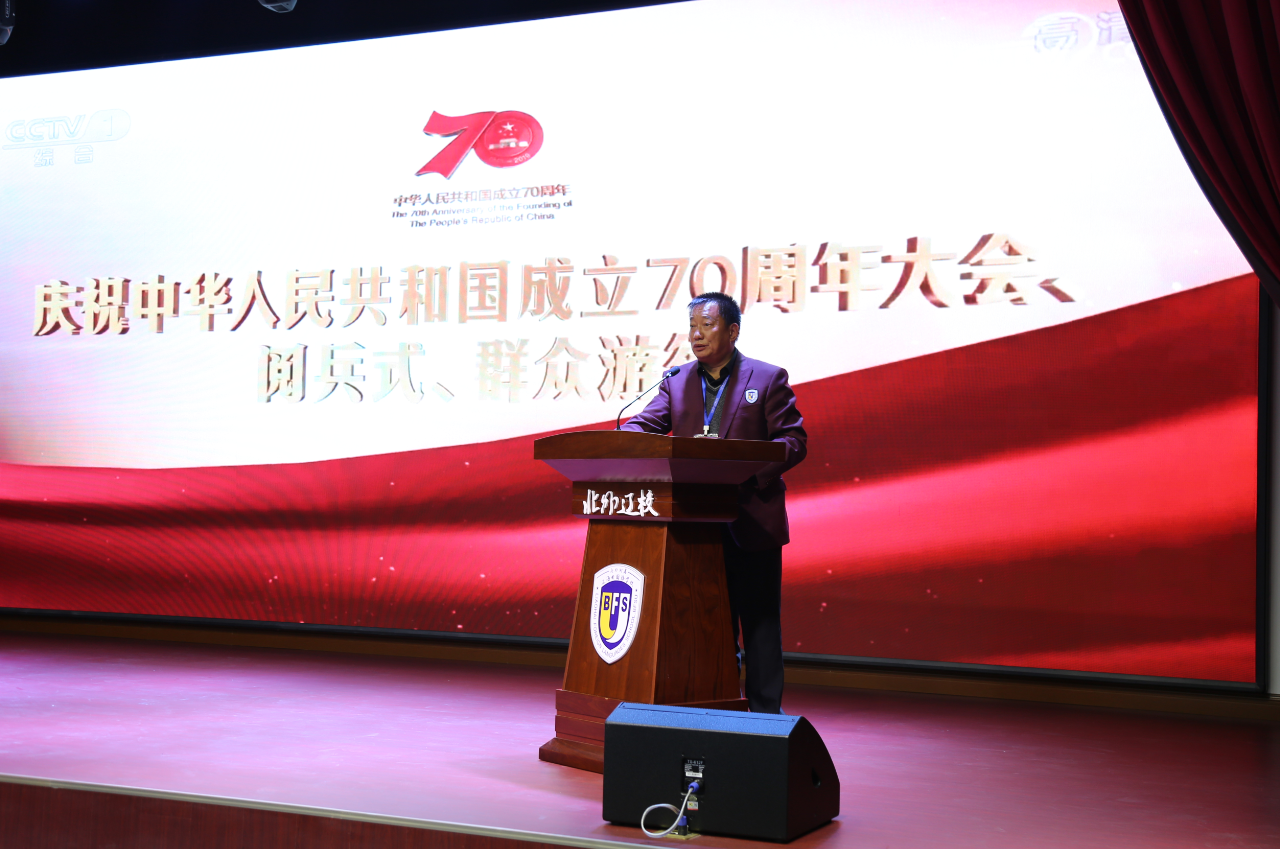 观看结束,北外辽校董事长王爷爷给全体同学做爱国主义教育报告。王爷爷语重心长地说:你们是祖国的未来,是中华民族伟大复兴中国梦的未来主力军,从现在起你们就要树立远大的志向和明确的学习目标,把自己最重要的人生志向,同祖国和人民联系在一起。