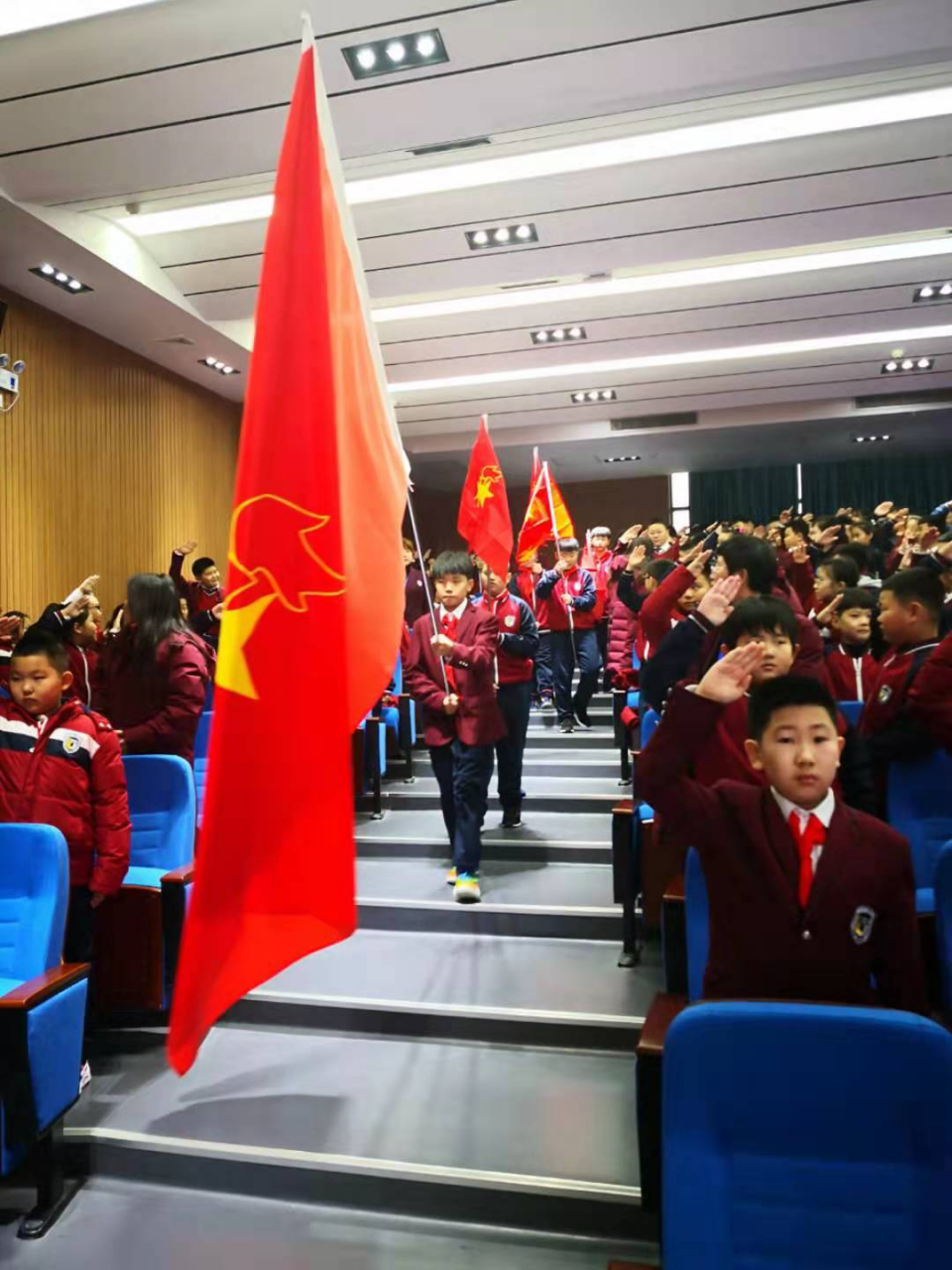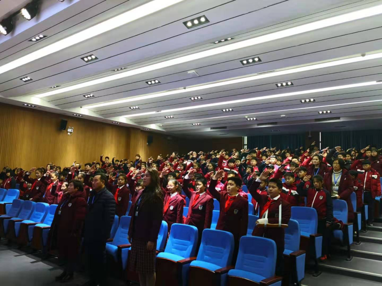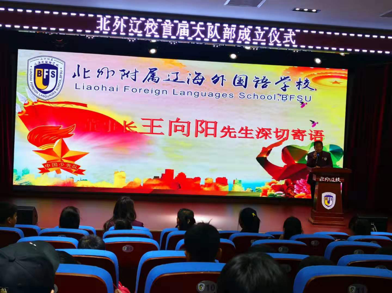 12月9日下午,北外辽校小学部二至六年级全体师生汇聚一堂,在艺术中心二楼报告厅共同庆祝第一届少先大队部成立暨大队委就职仪式。王向阳董事长、张朋云校长受邀出席。