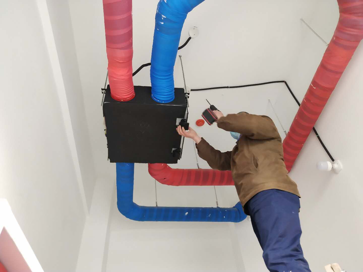 开学前夕,防控关键时刻,今天上午,学校特意组织专业人员对各教室安装的新风系统全面进行升级维护,投入巨资更换最新研制的杀菌消毒滤网,该系统不仅可以将室内的污浊空气排出室外,同时又将室外经过14道过滤净化的新鲜空气输入教室内。 进入教室的空气经过过滤、杀菌、增氧、预热,使教室学习环境保持在最适宜的温度和湿度,确保空气质量优质达标。绿色科技改变校园生态,为抗击病毒保驾护航。北外辽校开创校园绿色生态先河,新风系统将在抗击病毒战疫中彰显神威!