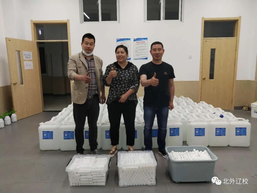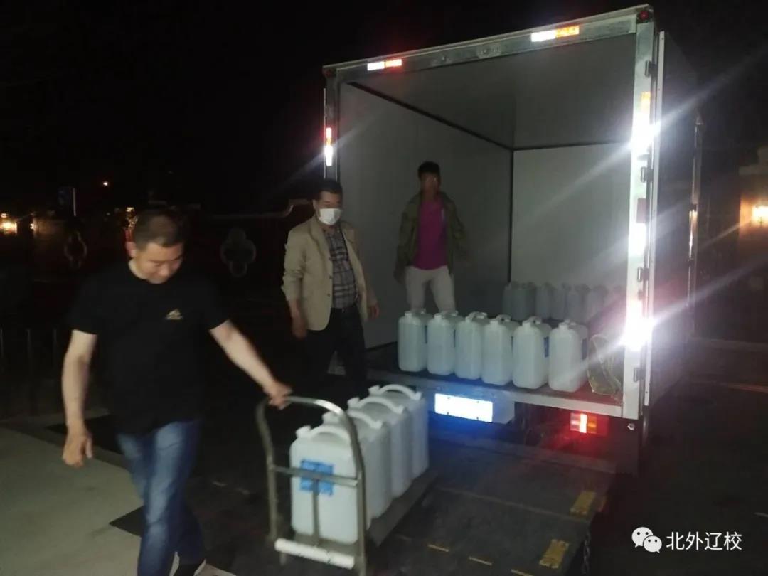 5月29日晚,北外辽校发生了感人的一幕:夜幕降临,周末的校园格外宁静,校门口突然驰来一辆大货车,学校安保人员査询后得知,是学校二年级一位沈阳的爱心家长在得知31号学校低年级学生全部开学的信息后,全家出动傍晚特意驾车从沈阳釆购了150桶和800支专门用于各类餐具,蔬菜和教室空气杀菌的酸性氧化电位水杀菌消毒液,该产品是最新研发成功的可以“喝”的消毒水,大爱无疆,一切为了孩子,为了孩子一切,学校家长心连心,同行动,作贡献!