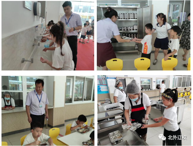 到了午餐时间,孩子们来到了北外辽校专为一年级同学准备的矮桌椅食堂就餐,食堂里早已准备好了北外辽校“王爷爷”为大家特供的美味午餐,孩子们有序的排队、洗手、打餐、入座,吃的香甜,对北外辽校的午餐深表喜欢。
