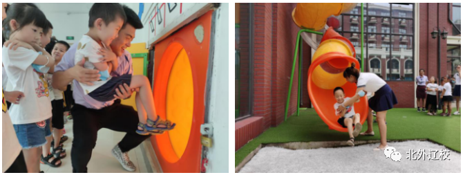 最后,来到了我校的特色逃生通道,在北外辽校老师的指导下,既安全又愉快的体验了如何正确逃生,保护自己。
