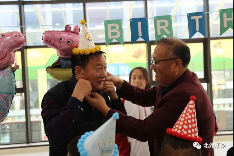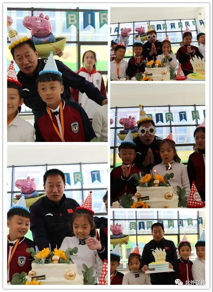 北外辽校的孩子们最爱最爱的王爷爷,也是在10月份过生日,他和孩子们一起戴上生日帽、共唱生日歌。