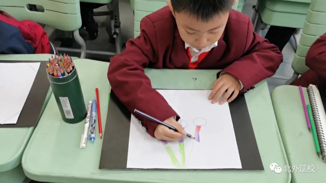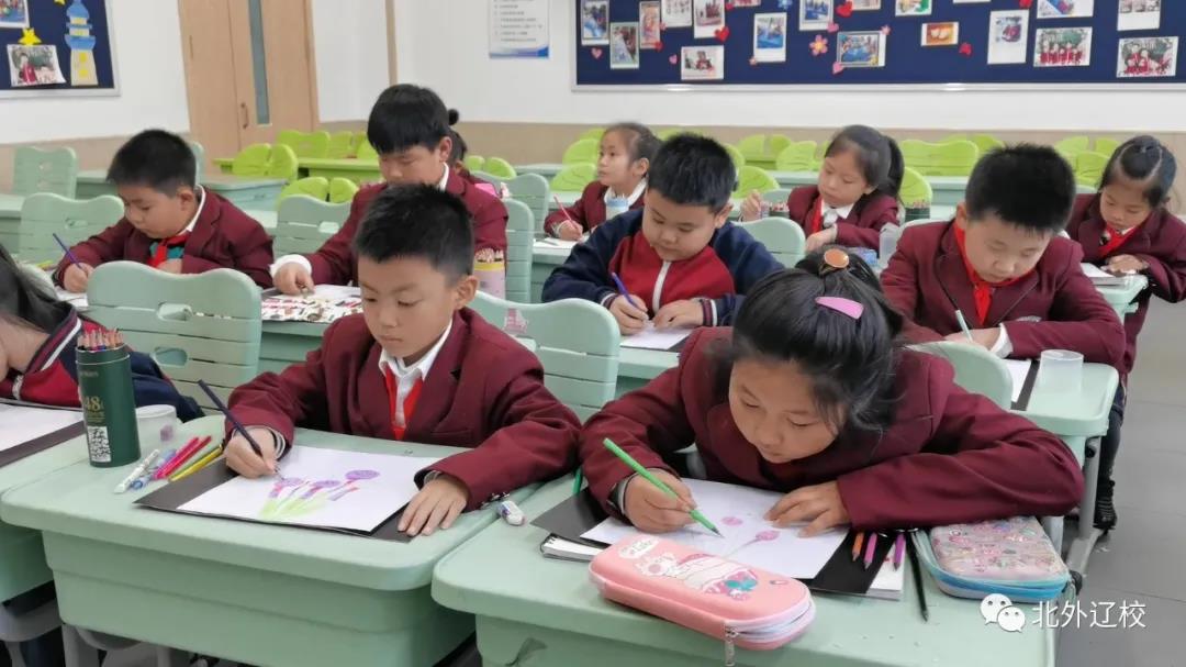 彩铅是一种介于素描和色彩之间的一种绘画形式,它的特点在于色彩丰富而且细腻,能够表现出轻盈、通透、准确的物体质感。北外辽校以全方位培养学生为原则,五育并举,开设彩铅课程,并融入家乡元素,让学生们学习课程的同时,还培养了他们的家国情怀。