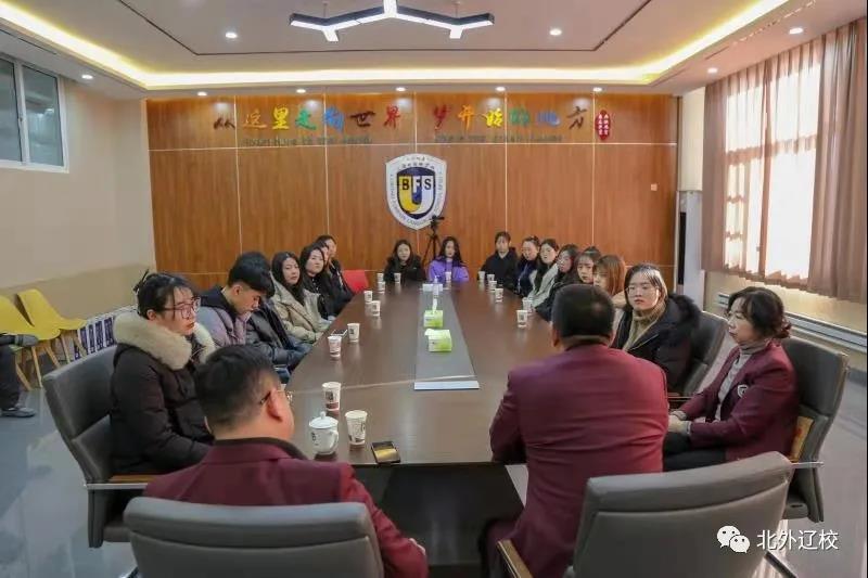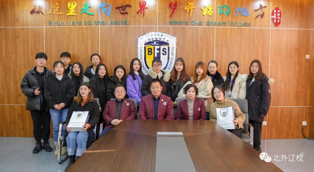 2020年12月15日上午,北外辽校召开欢送沈阳师范大学实习生座谈会。北外辽校创始人王向阳先生、黄陆明校长、佟瑞波副书记出席此次会议,并对来到学校实习的大学生们表示感谢,并祝愿他们在今后从教的路上能够“眼中有光、心中有爱”。