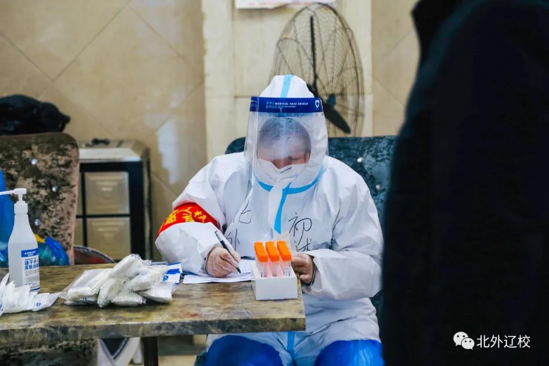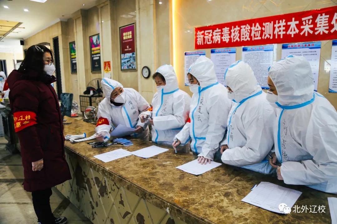 北外辽校首批抗疫志愿者整装出征海城全民核酸检测第一线,与全市人民一起,同心同德、阻击疫情,守护百姓的平安健康和幸福生活。