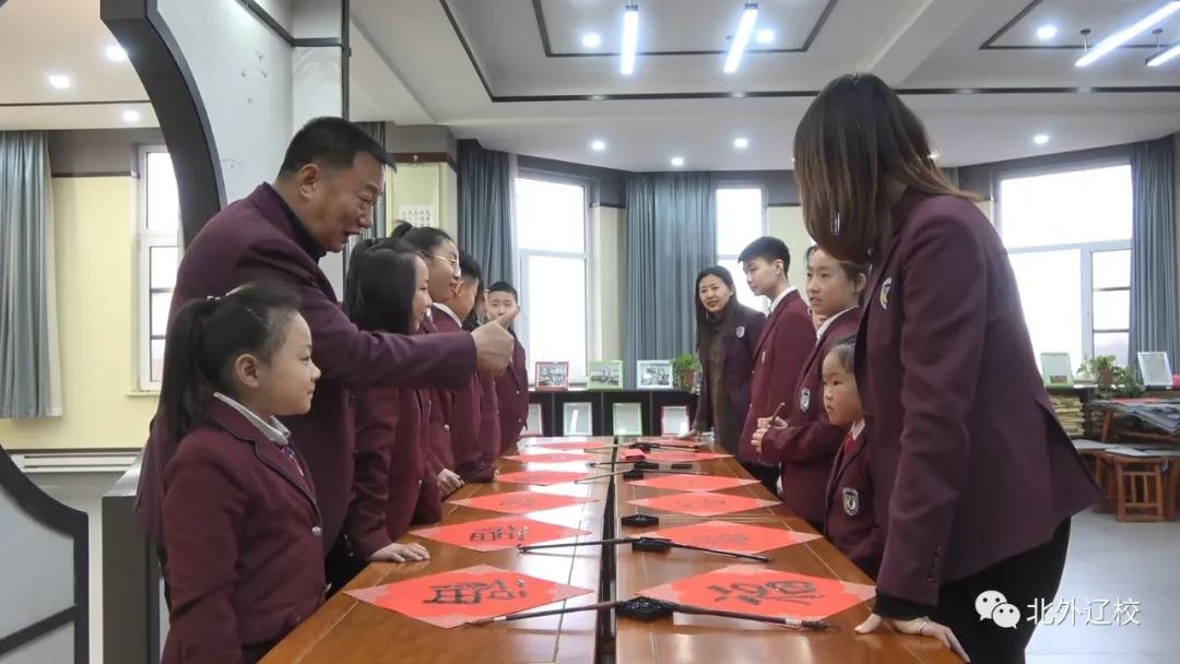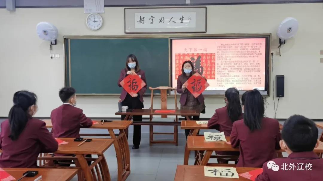 为了庆祝即将到来的新春佳节,弘扬中国传统文化。近日,北外辽校创始人王向阳先生、书法老师杨天赦、赵艺带领学生手写多种笔体的“福”字,在给家人和同学送祝福的同时,让学生们感受过年的风俗习惯,感受中国书法的魅力。