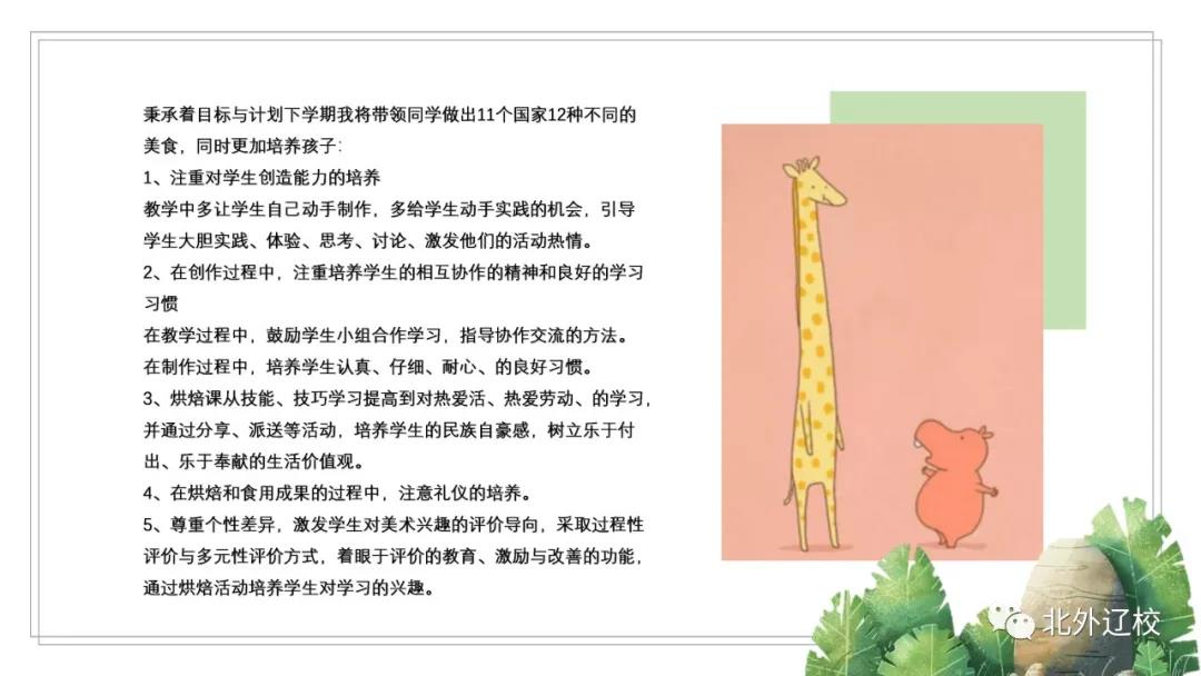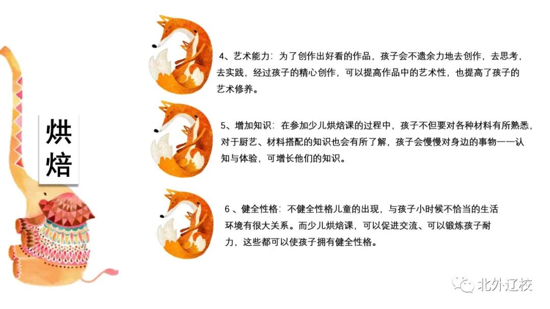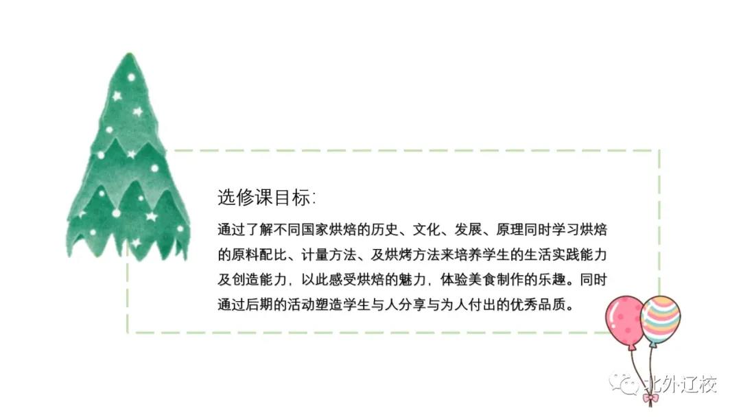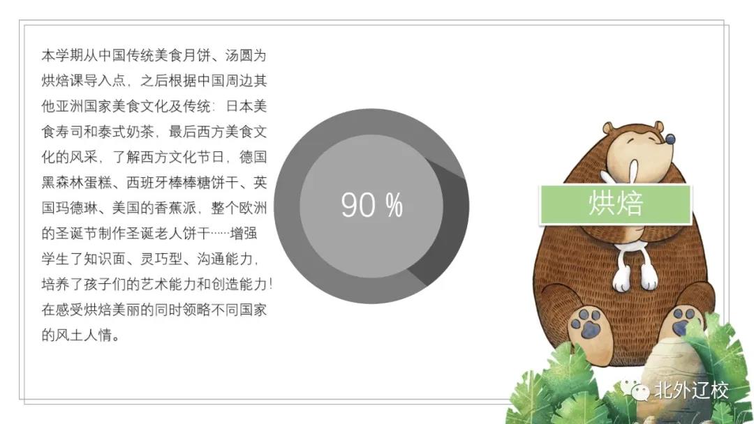 烘培课程是集趣味性、培养动手能力和培养创意性为一体的综合课程。北外辽校通过开设烘焙课,让学生亲手完成精美的烘焙作品,学生们在制作的过程中充分调动感官和手指的协调,让他们创造力得到最大限度的体现,并帮助他们建立良好的自信心和对生活的热爱,提升他们的综合人文素养。