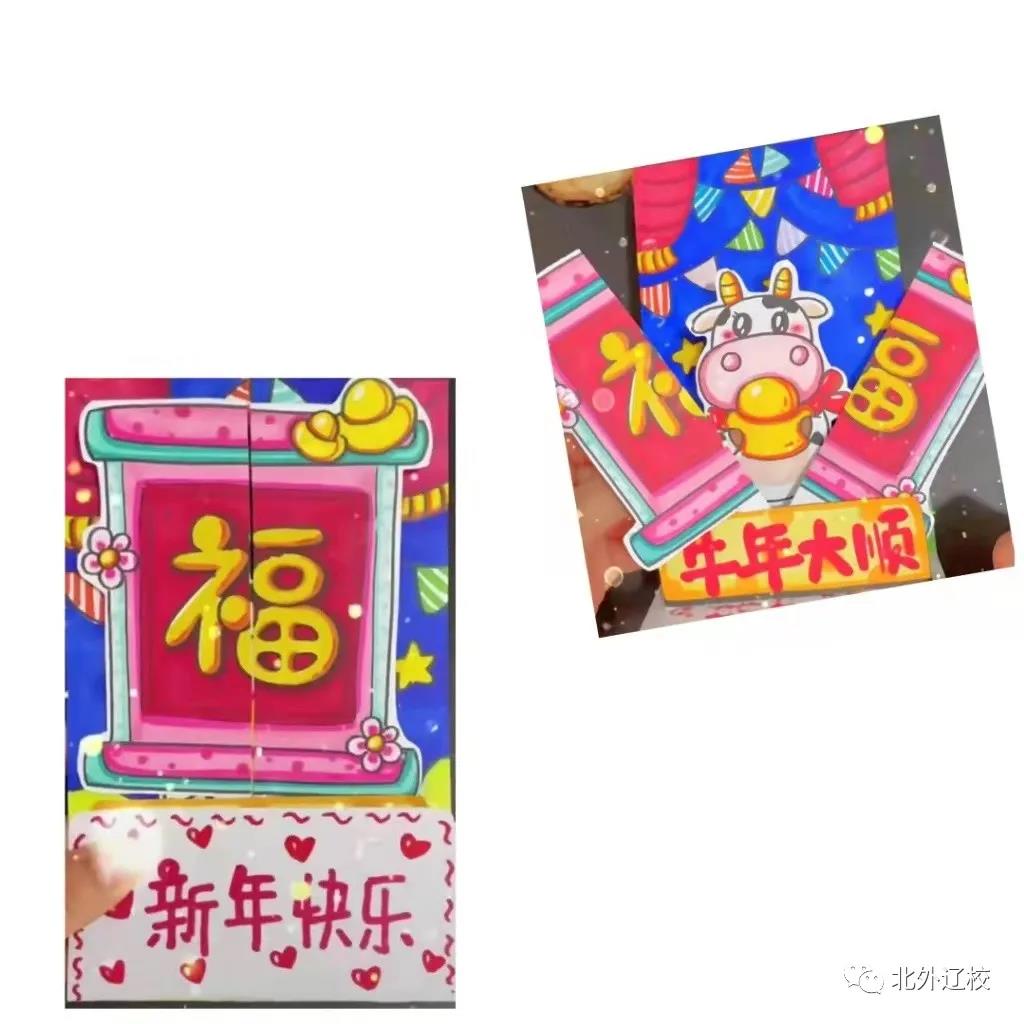 此次寒假,学校布置给每一名学生一份作业,通过自己对奇思妙想,为自己的“爷爷、奶奶、姥爷、姥姥”等长辈亲手做一份新年礼物,旨在培养孩子们的感恩情怀。孩子们都非常认真完成这份作业,当他们把这份“大礼”送给自己的亲人时,幸福、欢笑洋溢在他们的脸上。
