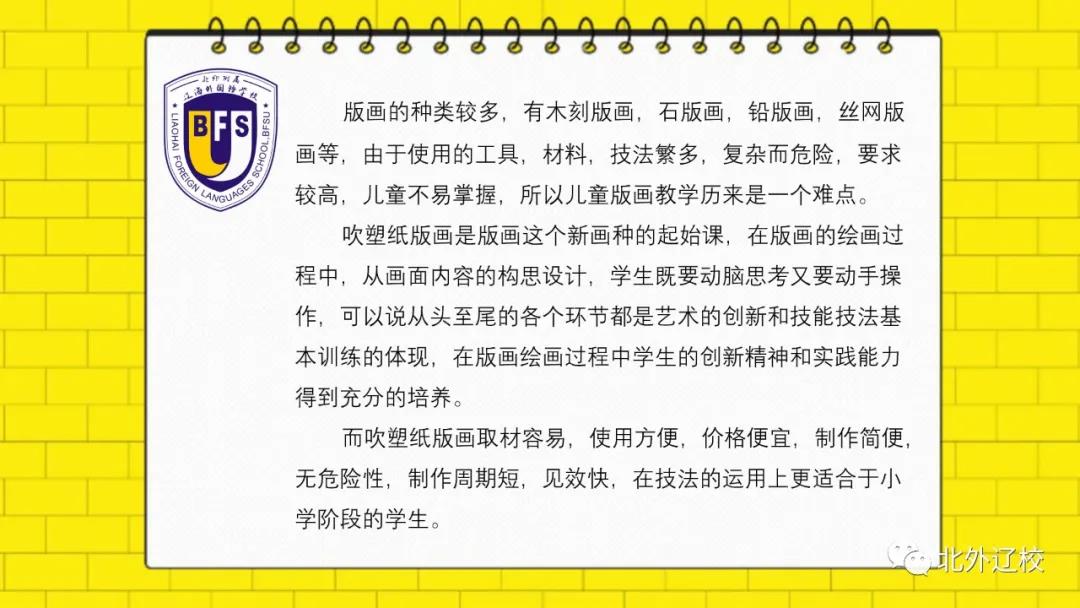 北外辽校开设的版画课,让他们从画面内容的构思设计,充分调动孩子们的手和脑,整个作画过程都是艺术创造的体现,让他们在课程学习中,懂得发现美,并能创造美,启发他们的艺术天赋,让他们收获丰富多彩的童年。