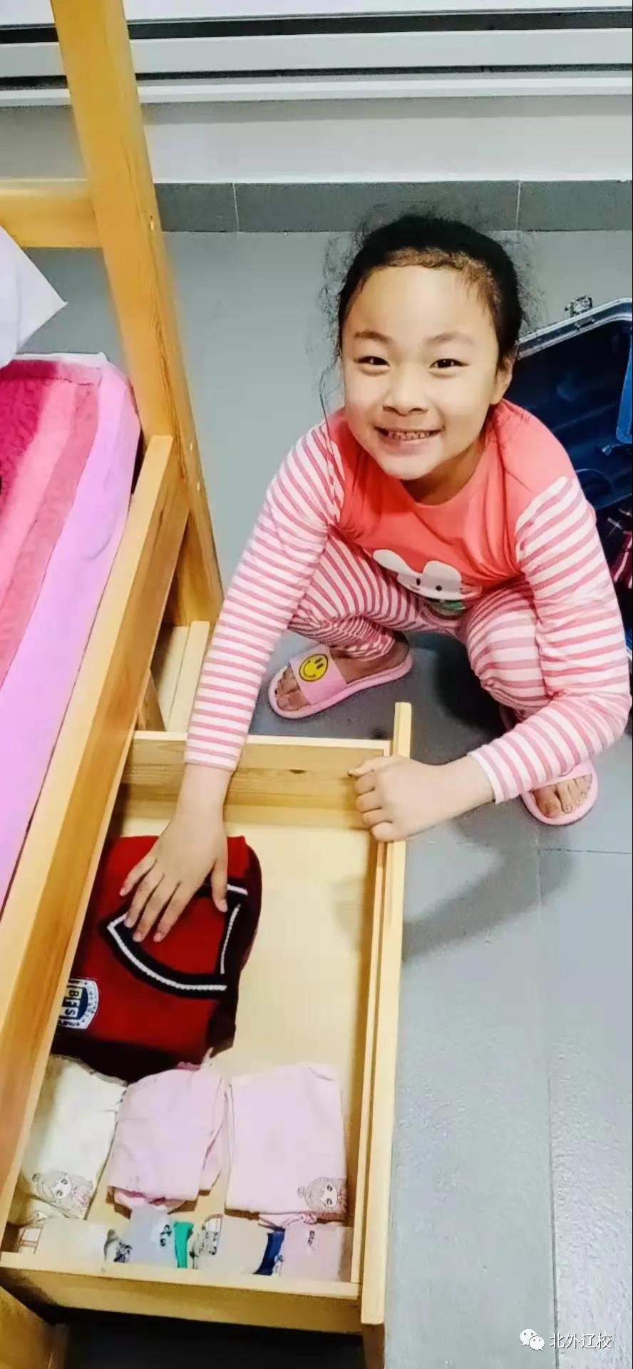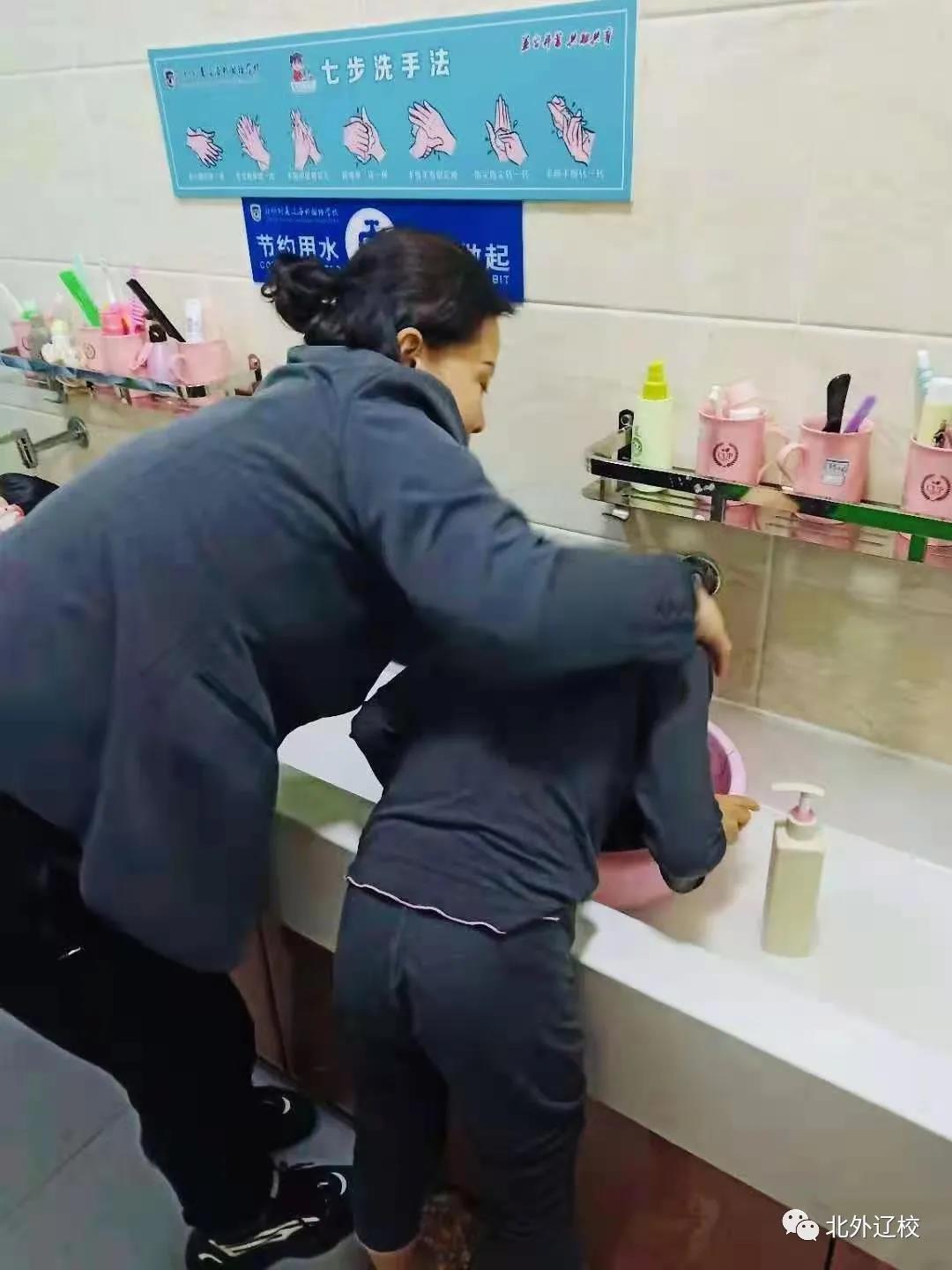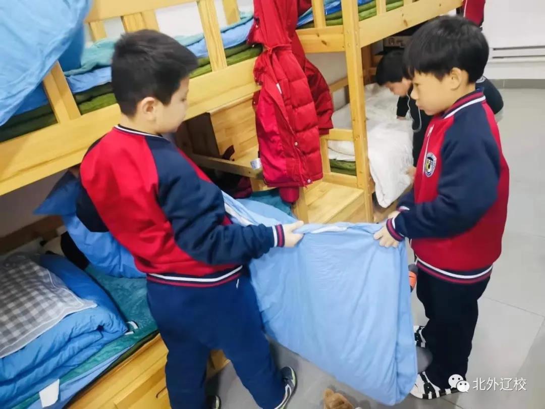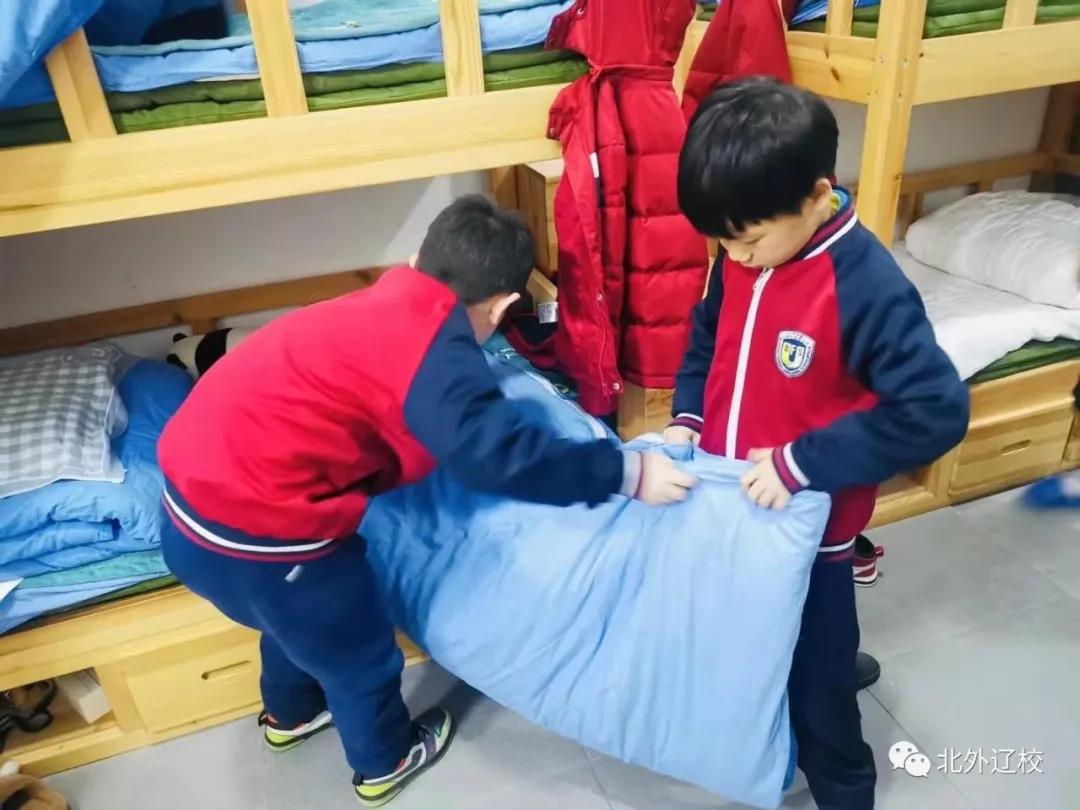 北外辽校的生活老师帮助孩子们做好内务,帮助孩子们梳洗,她们用默默的付出,让北外辽校成为孩子们的第二个家,温暖着每一个孩子,让他们在校园里也能感受到家的温暖。