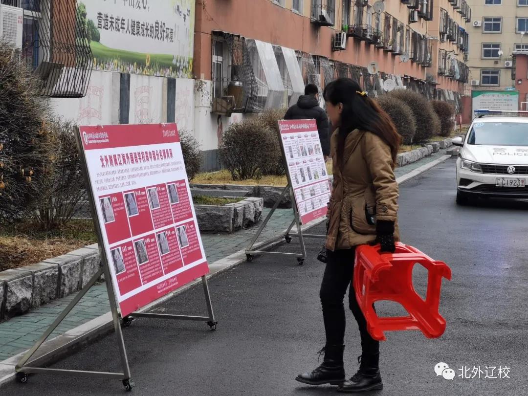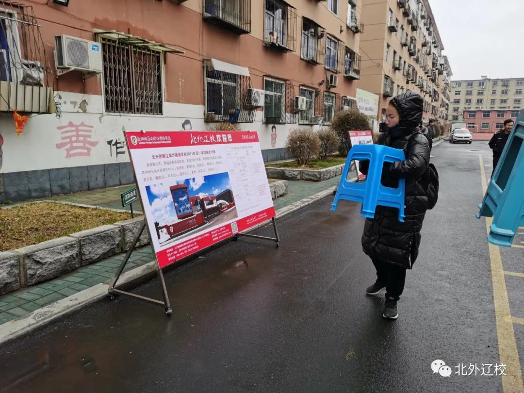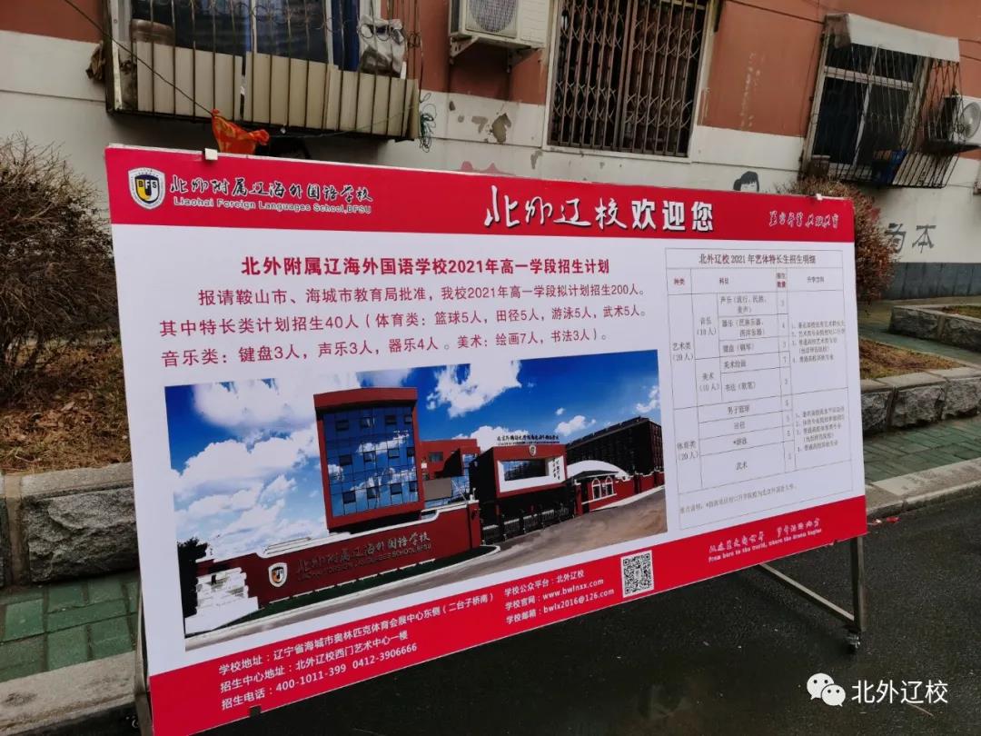 (北外辽校高中部招生展板摆放在海城四中正门口)