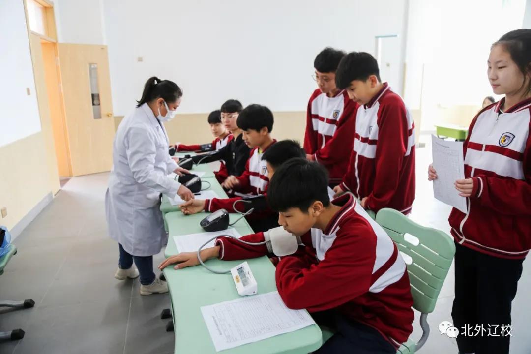 为了促进学生健康成长,及时了解和准确掌握学生的体质发展动态和生长发育情况,北外辽校邀请海城市中心医院医务人员来到学校,为全校学生进行健康体检。
