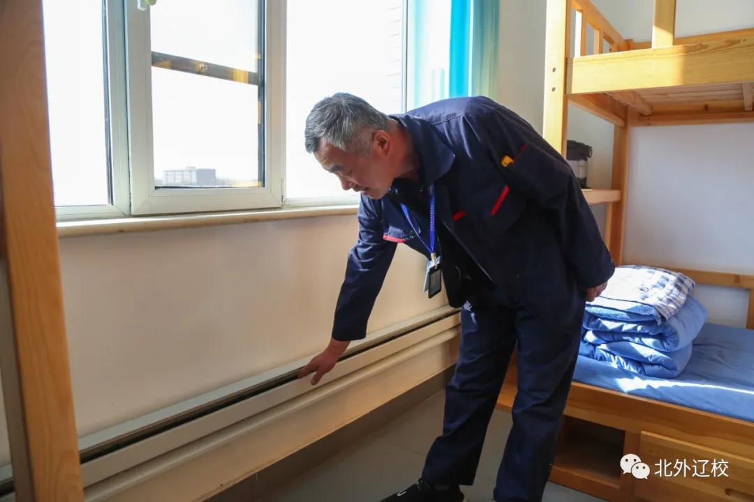(维修人员正在检查寝室内电暖器运行情况)