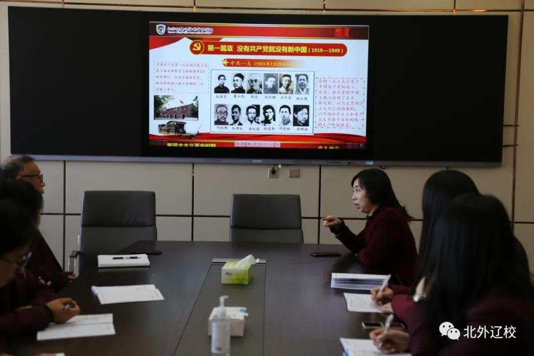 北外辽校党委副书记佟瑞波为全体青年教师讲授党史学习教育课程,希望他们在中国共产党百年波澜壮阔的发展历程中,汲取丰富的智慧营养,学史明理、学史增信、学史崇德、学史力行,对北外辽校的教育、教学具有深远的意义。