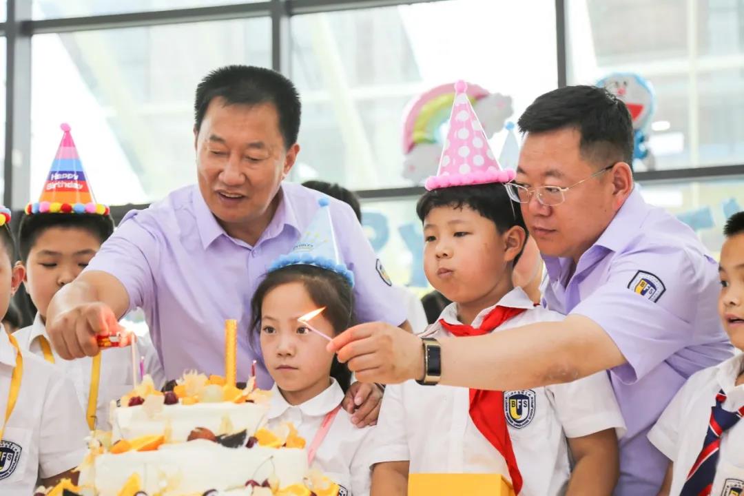 在老师们的带领下,伴随着生日歌大家一起切蛋糕。此情此景,同学们毫不掩饰内心的喜悦,歌声、欢呼声此起彼伏,大家都陶醉其中,其乐融融。