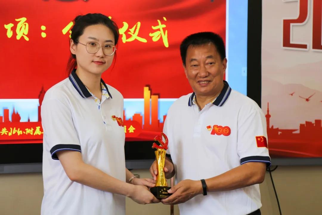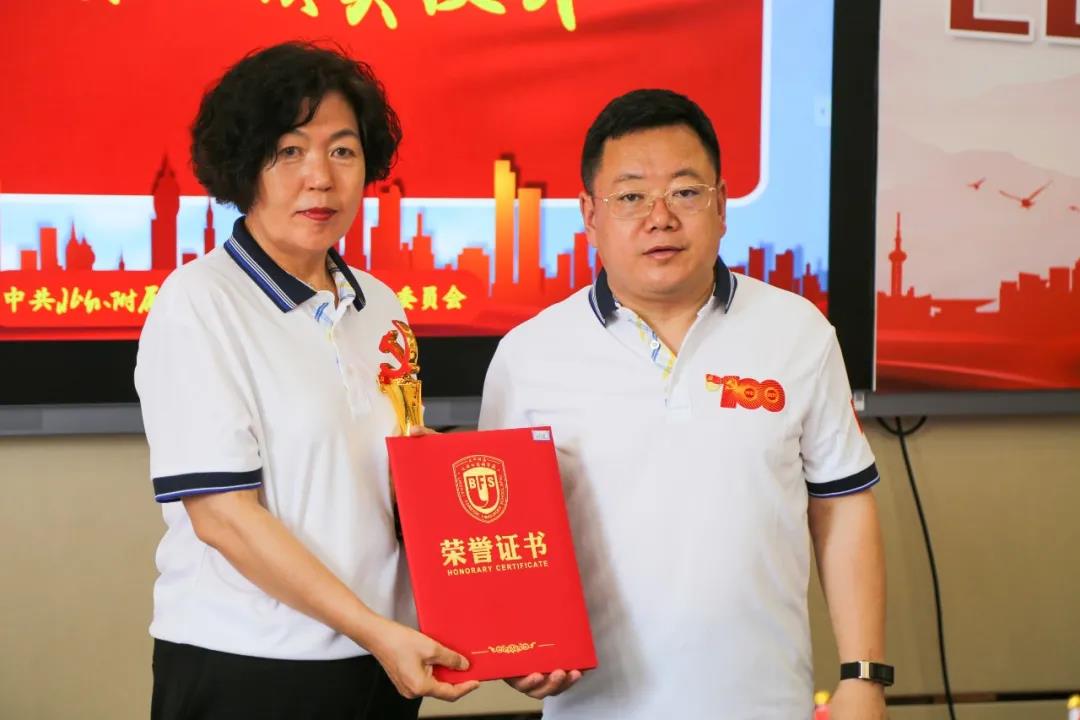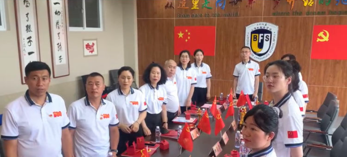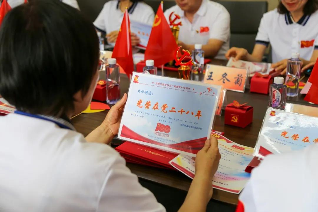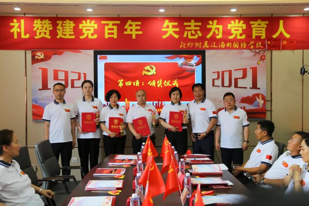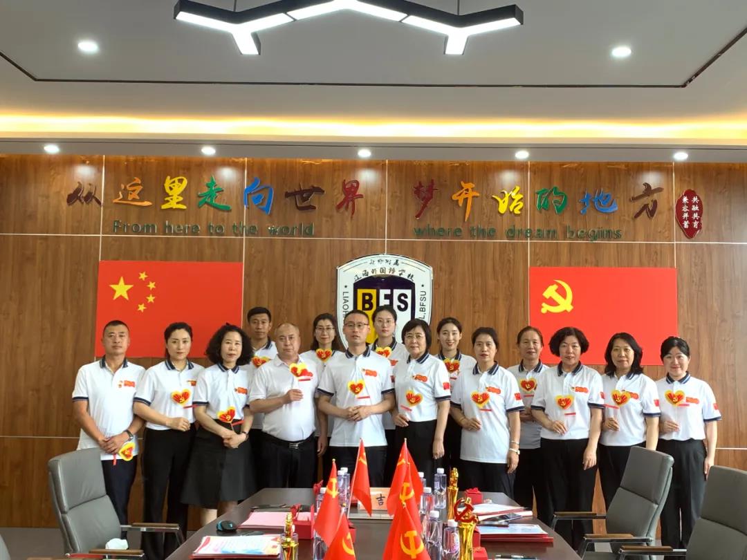 6月29日下午13:10分,中共北外附属辽海外国语学校支部委员会在二楼会议室举行中国共产党成立100周年庆祝大会,向伟大的党献上最诚挚的祝福。参加庆祝大会的人员有:特邀嘉宾王向阳董事长、黄陆明校长,支部党员、支部重点培养对象及入党积极分子等。
