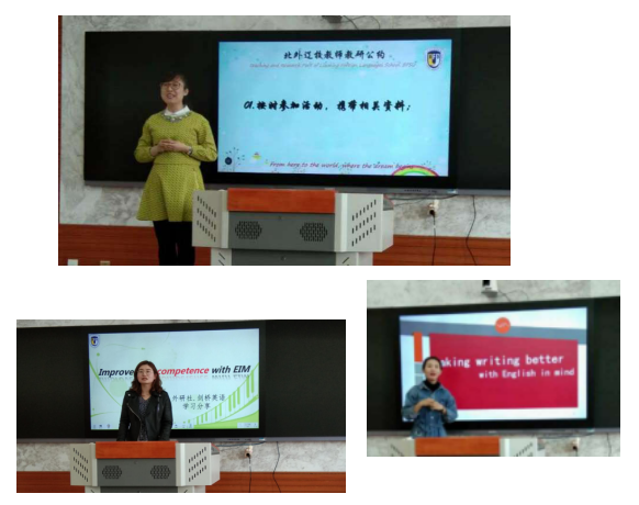 李丽萍老师担任本次活动的主持人。在老师们共同研读北外辽校教研公约之后曲梓萌老师为大家带来了初中英语English in Mind教材的学习分享。通过曲梓萌老师的详细讲解,老师们对该教材有了更进一步的了解。随后纪欢老师又给我们带来了初中 English in Mind教材 writing部分的详细讲解。并与老师们分享了一句话"方向比努力更重要"。