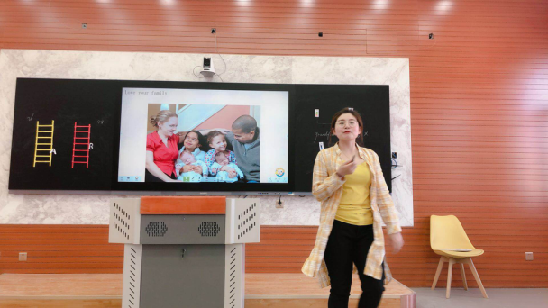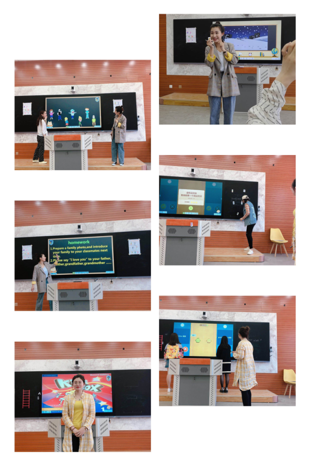 两位老师上课结束后,又从教材,教学重点难点,以及教学方法和情感态度等方面进行了说课。本课主题是My family。两位老师都从不同方面进行了情感的升华,教育孩子们要爱我们的家,要互爱家里的每一个人。